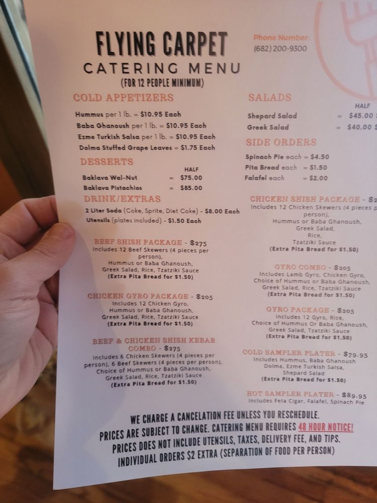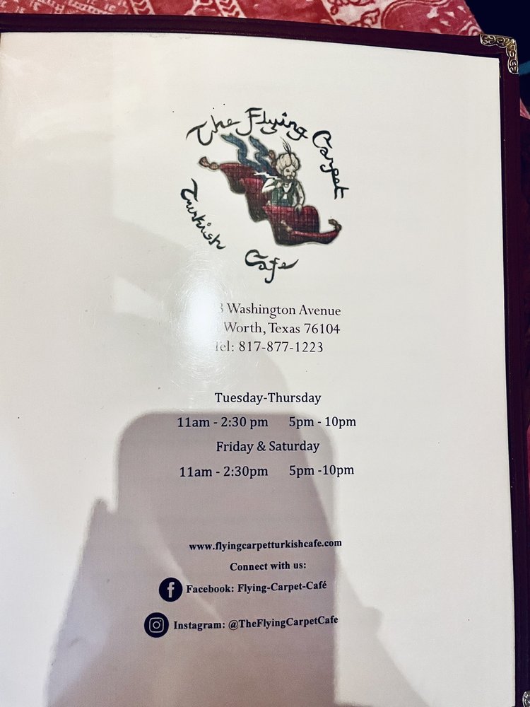 Introducing the menu at The Flying Carpet Turkish Cafe, located in Fort Worth, Texas, brings a taste of authenticity with a range of delectable Turkish dishes. From the flavorful Adana Kebab lunch wrap to the mouthwatering mezze options like Babaganush and Falafel, there's something for every palate. The fresh and vibrant salads, such as the Chingene Salatasi and Choban Salatasi, are perfect for those looking for a refreshing meal. The cafe also offers a variety of utilities like takeout, delivery, and even cryptocurrency payments, making it a convenient and inclusive dining experience. With a cozy and romantic ambiance, The Flying Carpet Turkish Cafe is a must-visit for those seeking a taste of Turkey in the heart of Texas.